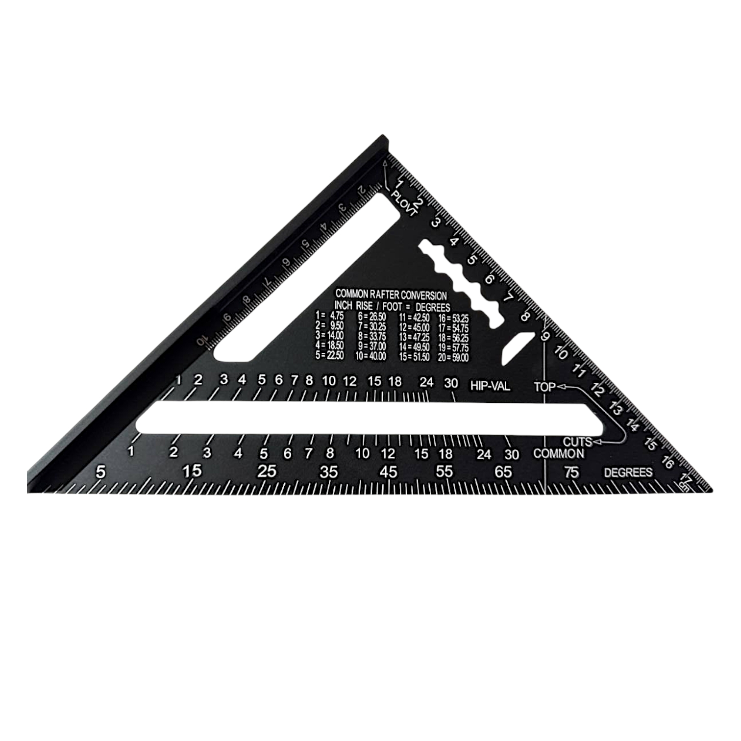 Разметка выполнена с двух сторон симметрично. По одному из катетов имеется жесткий упор, выступающий в каждую сторону на 10 мм.