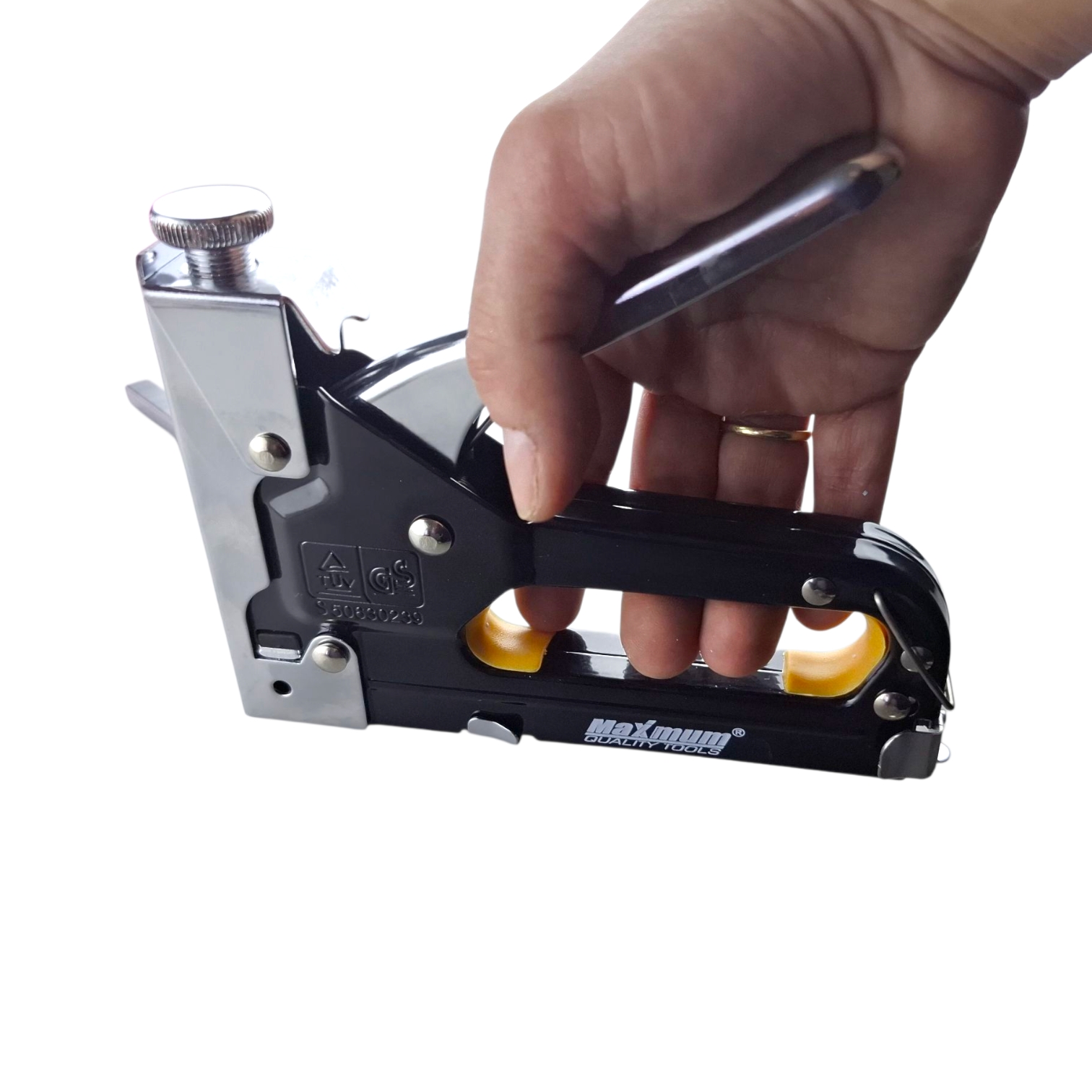 Профессиональный механический степлер 3 в 1 от бренда «MAXIMUM QUALITY TOOLS» (Максимально Качественный Инструмент) — это надежный инструмент для обивки мебели и крепежных работ. Модель оснащена верхним регулятором силы удара и работает с тремя типами расходников: скобами и гвоздями. Благодаря возможности точной настройки натяжения пружины вы легко подберете оптимальную мощность выстрела, исключая риск повреждения декоративной обшивки или рабочей поверхности.