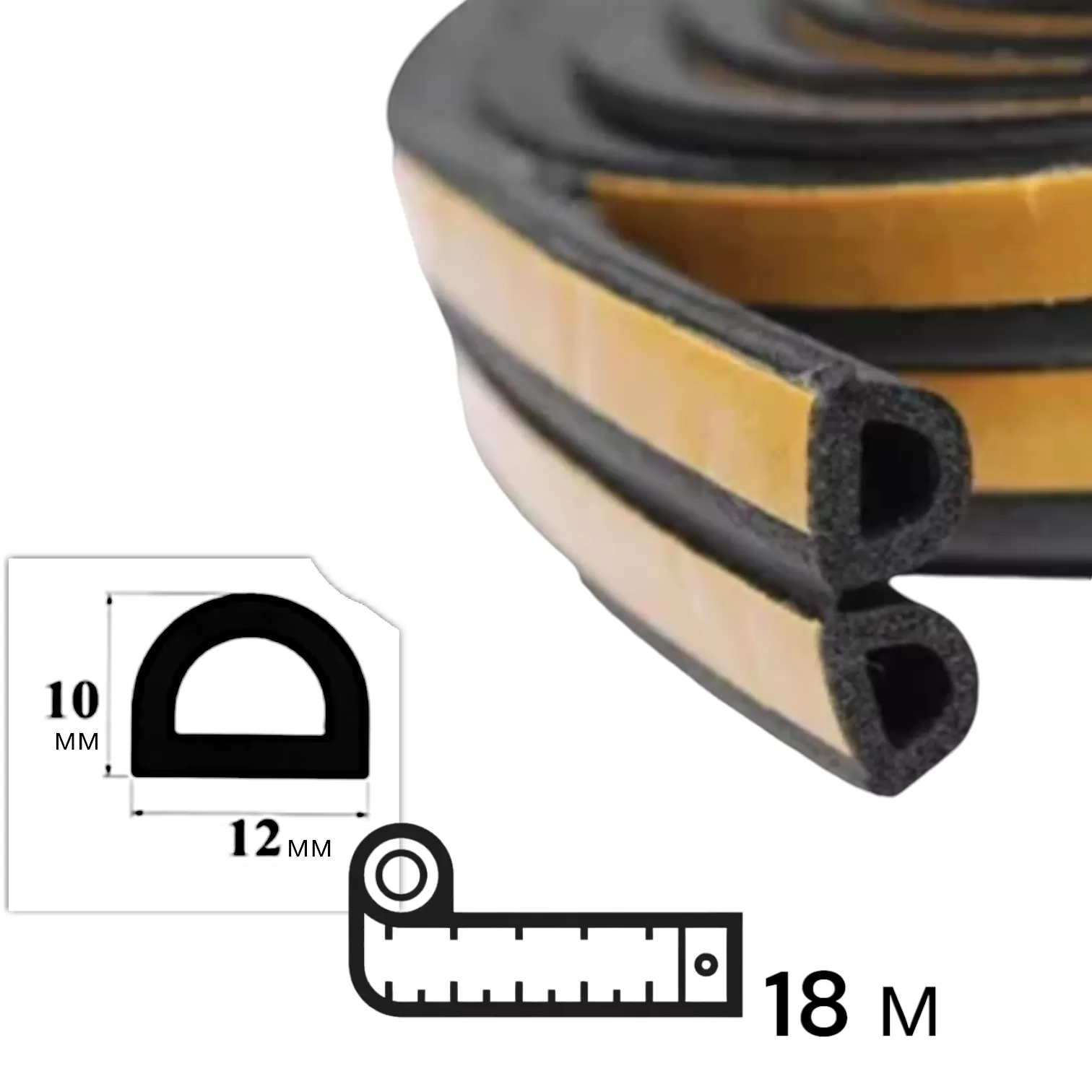 Уплотнитель резиновый самоклеящийся большой 2x25 м, сечение 10х12мм, профиль"D",коричневый,«Maximum»