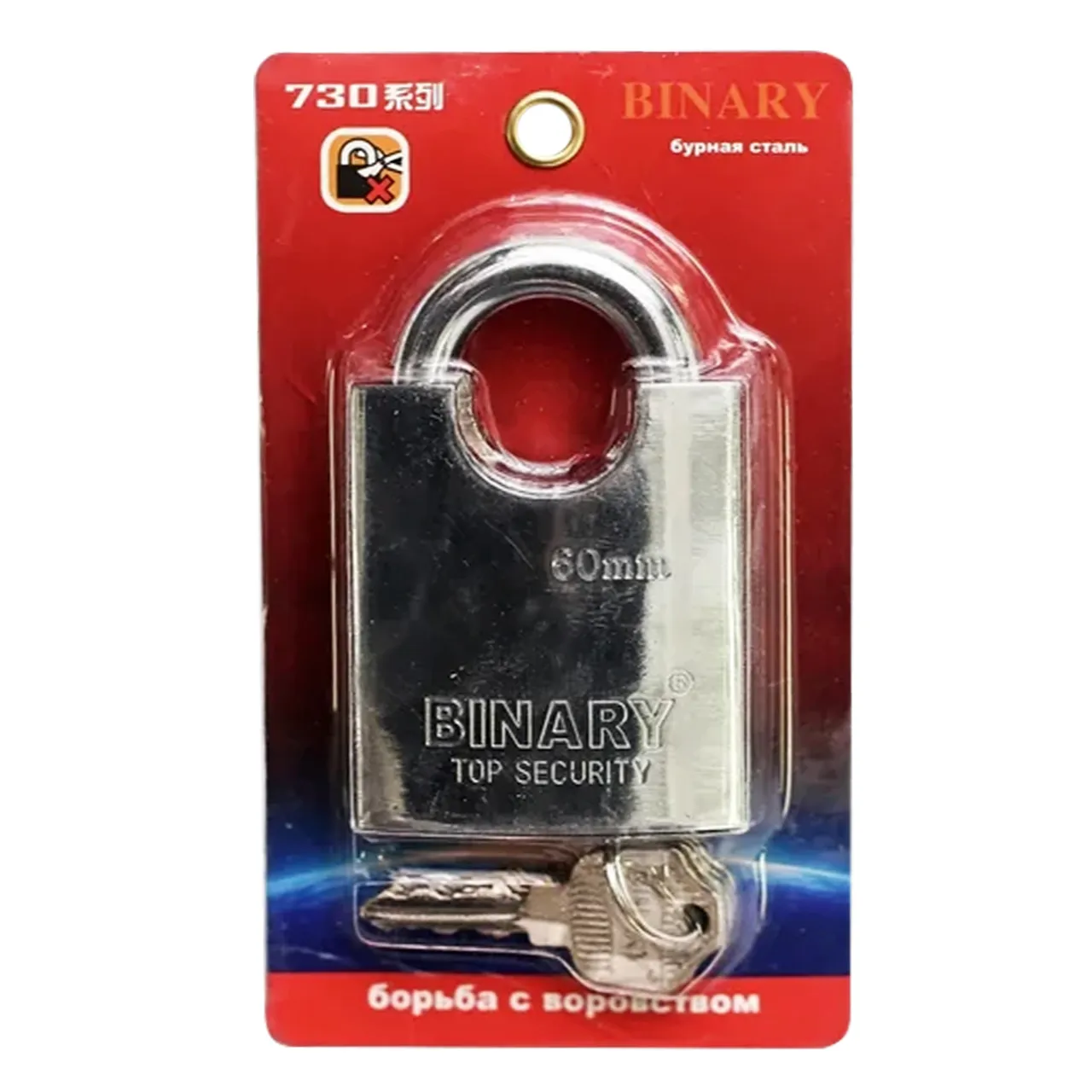 Навесной замок взломостойкий имеет прочную дужку из закаленной стали, которую почти полностью покрывает корпус замка, благодаря чему ее практически невозможно перепилить, перекусить или повлиять другим силовым методом.